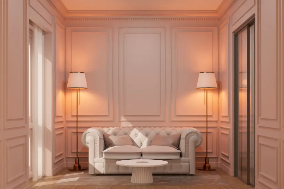 - 燈光 3000K 暖白,粉色牆會「發光」